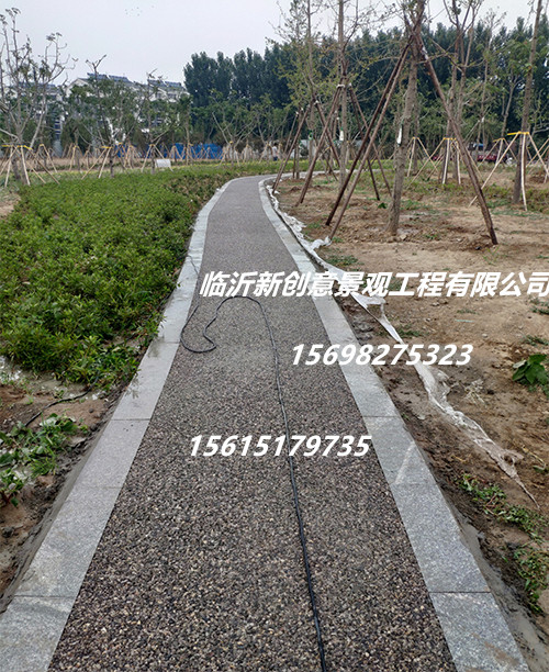 3、露骨料透水地坪在提高路面性能和功能的同时,还可以利用其鲜艳的颜色做出各种图案来美化我们的环境。应用于公园、小区道路、广场及游乐场所等。