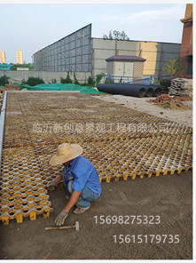 3.草皮一般用马尼拉草,此类草耐践踏,易生长。草皮铺设时应留出20mm左右的缝隙,并以品字形错开铺装。草皮铺好后,用水浇透,使草皮松软,再用小型压路机或平板振动机将草根打压至矩形格内(反复多次),使草根便于往下生长。高承载植草地坪,高承载植草矩阵格,高承载植草地坪施工就找临沂新创意景观。